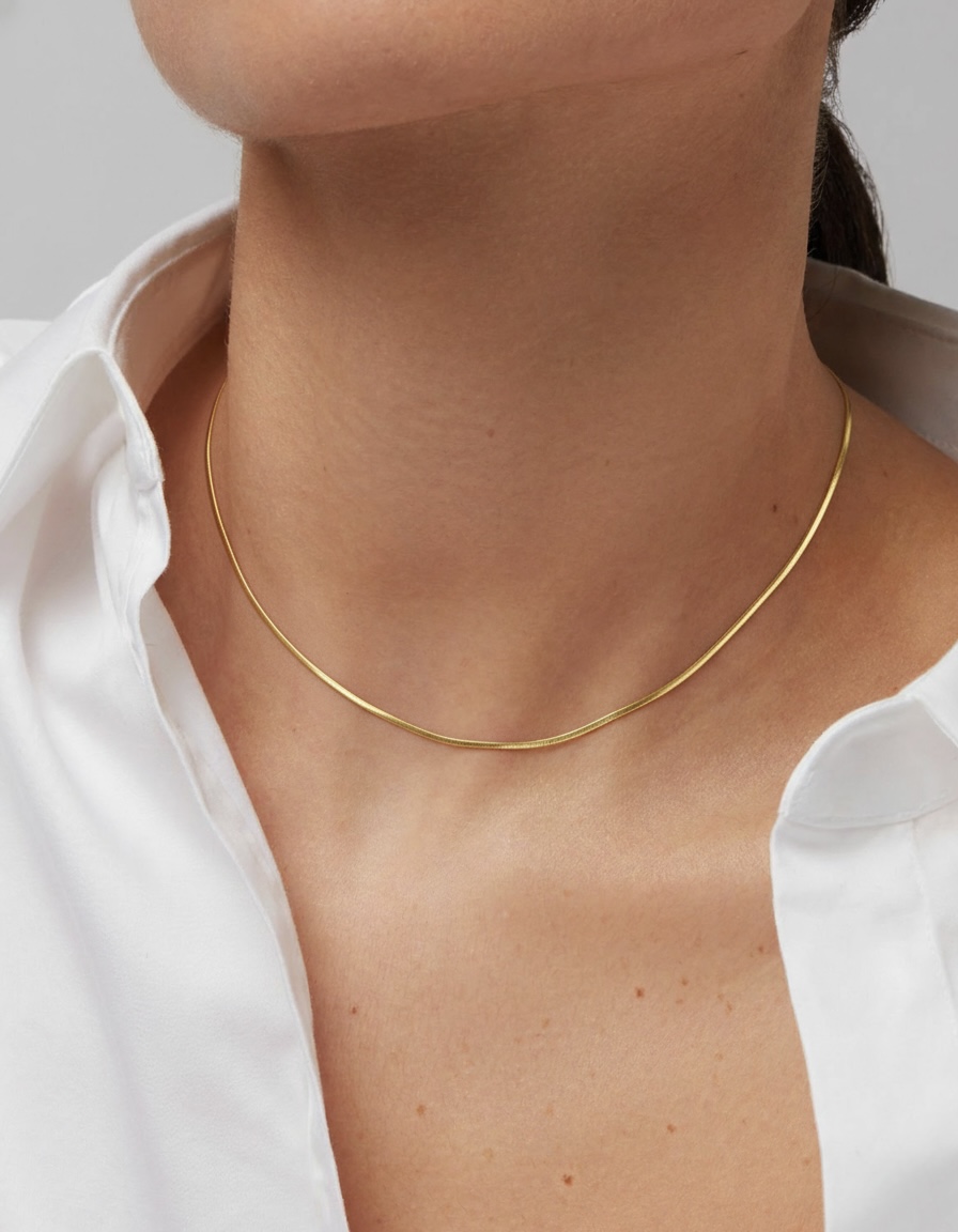 • Chain Style: Flat Snake Chain – smooth, fluid, and elegant