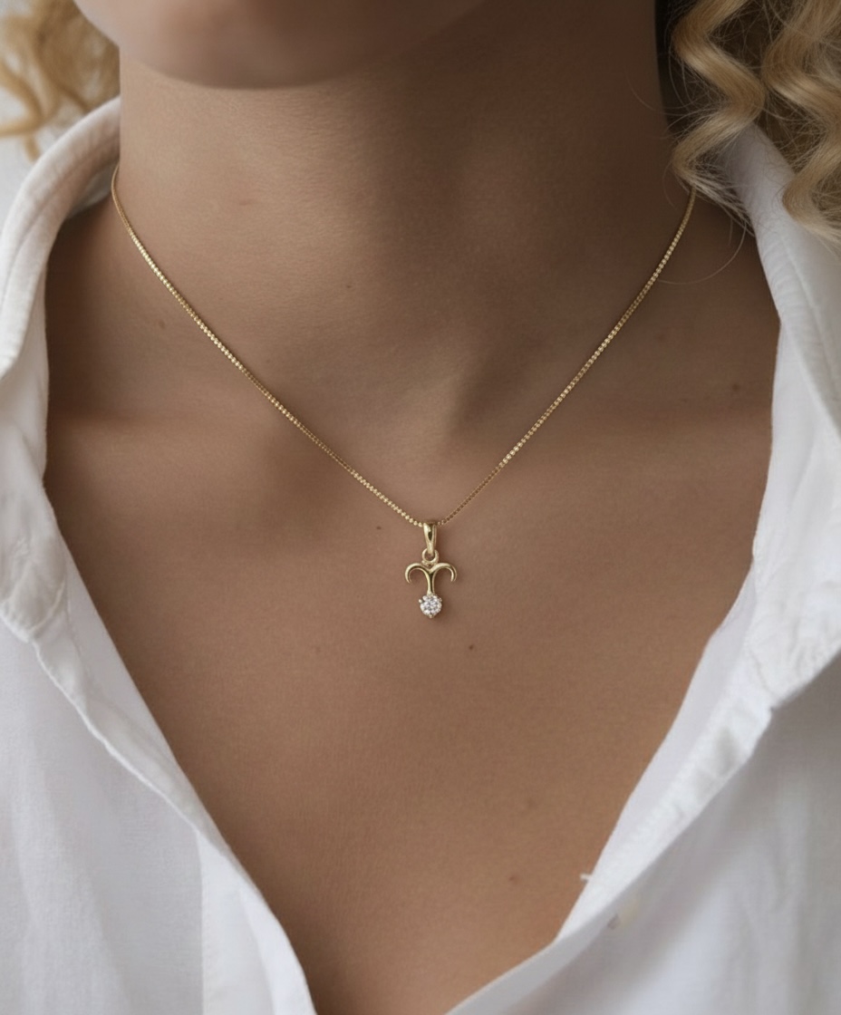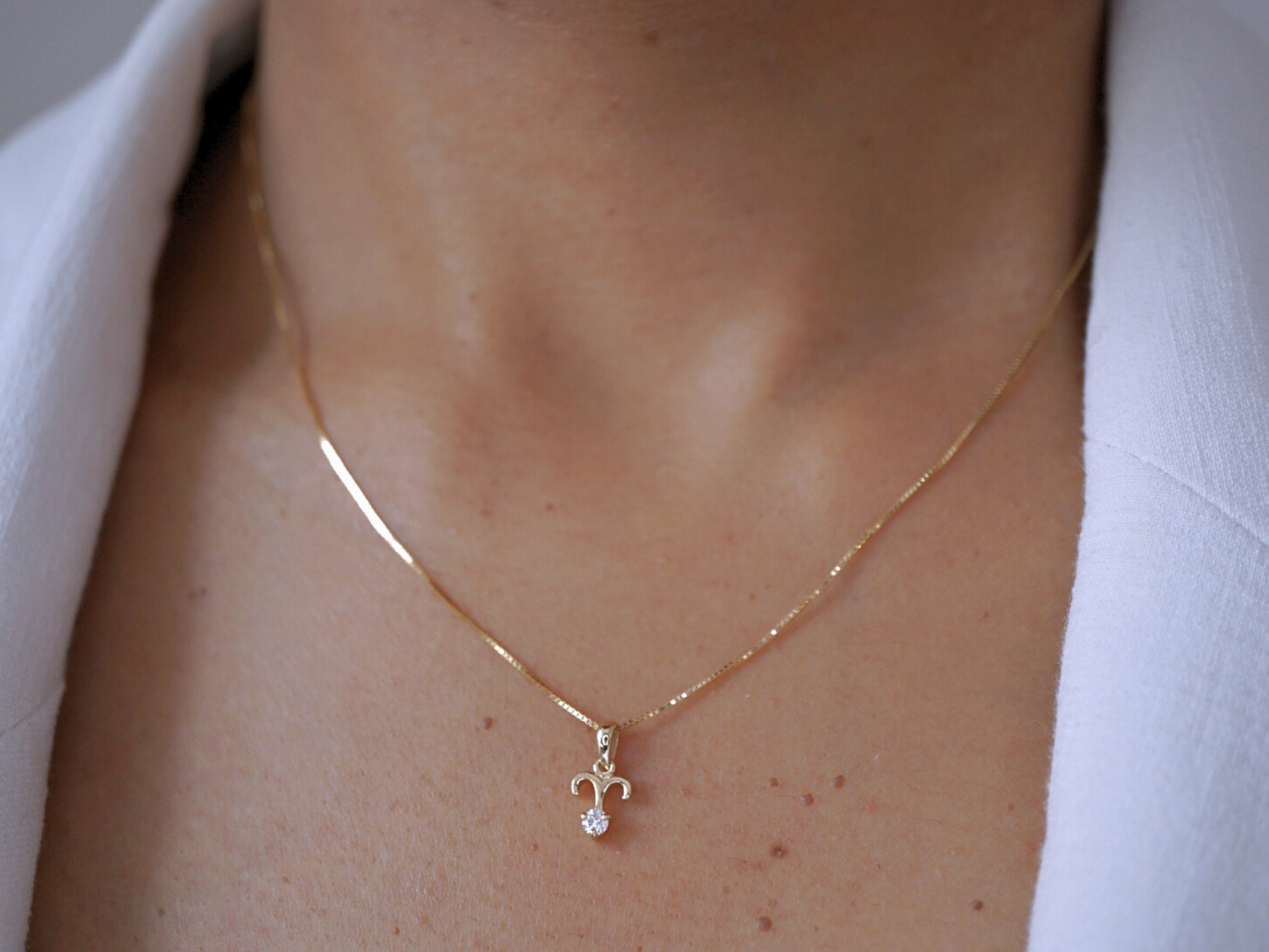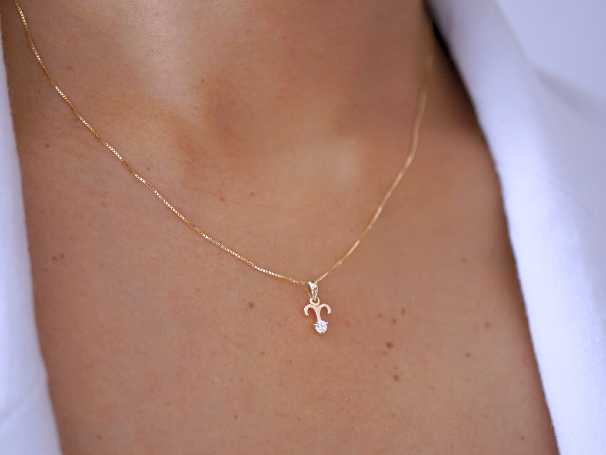 Aries with Diamond Pendant, 10K Solid Gold, Zodiac Sign Necklace