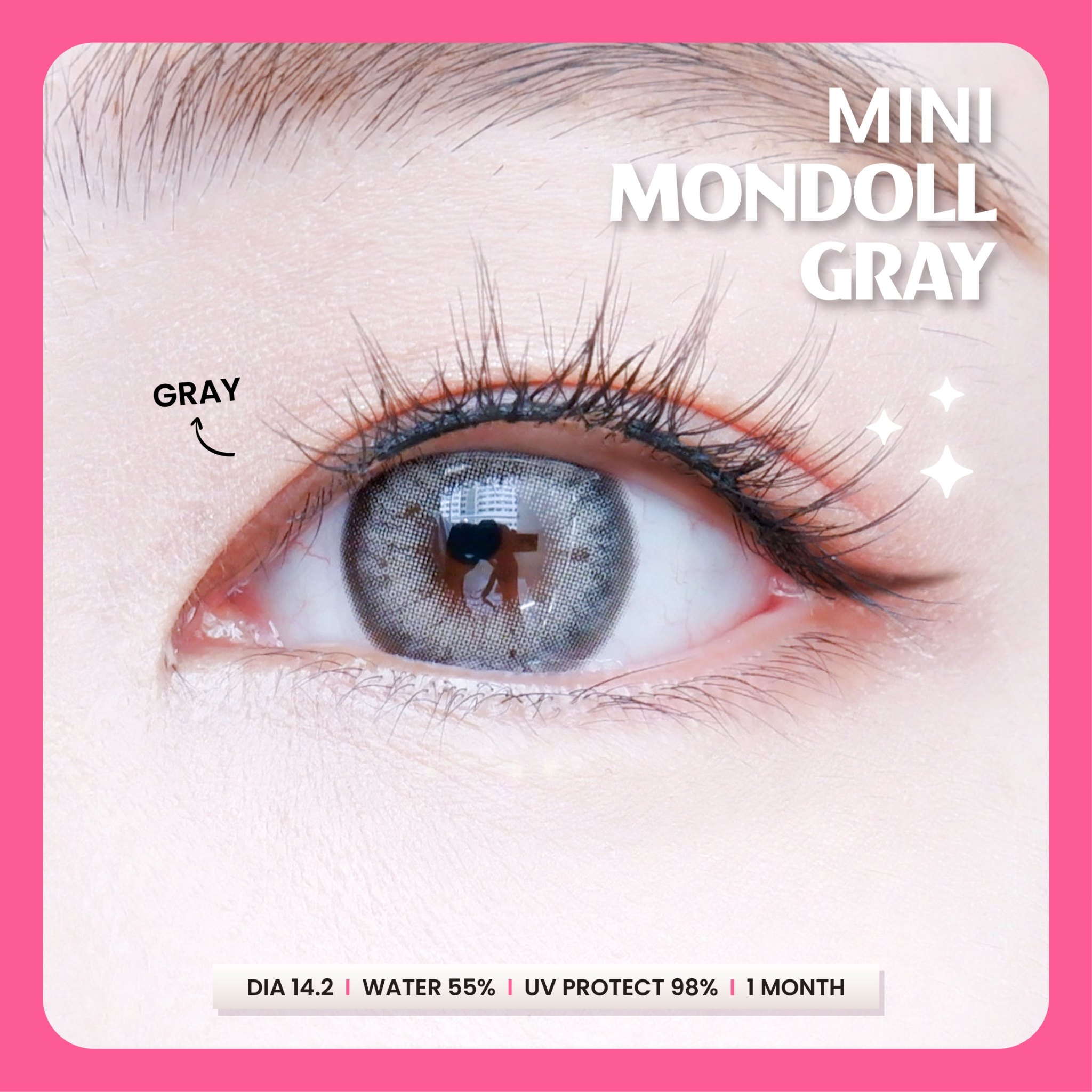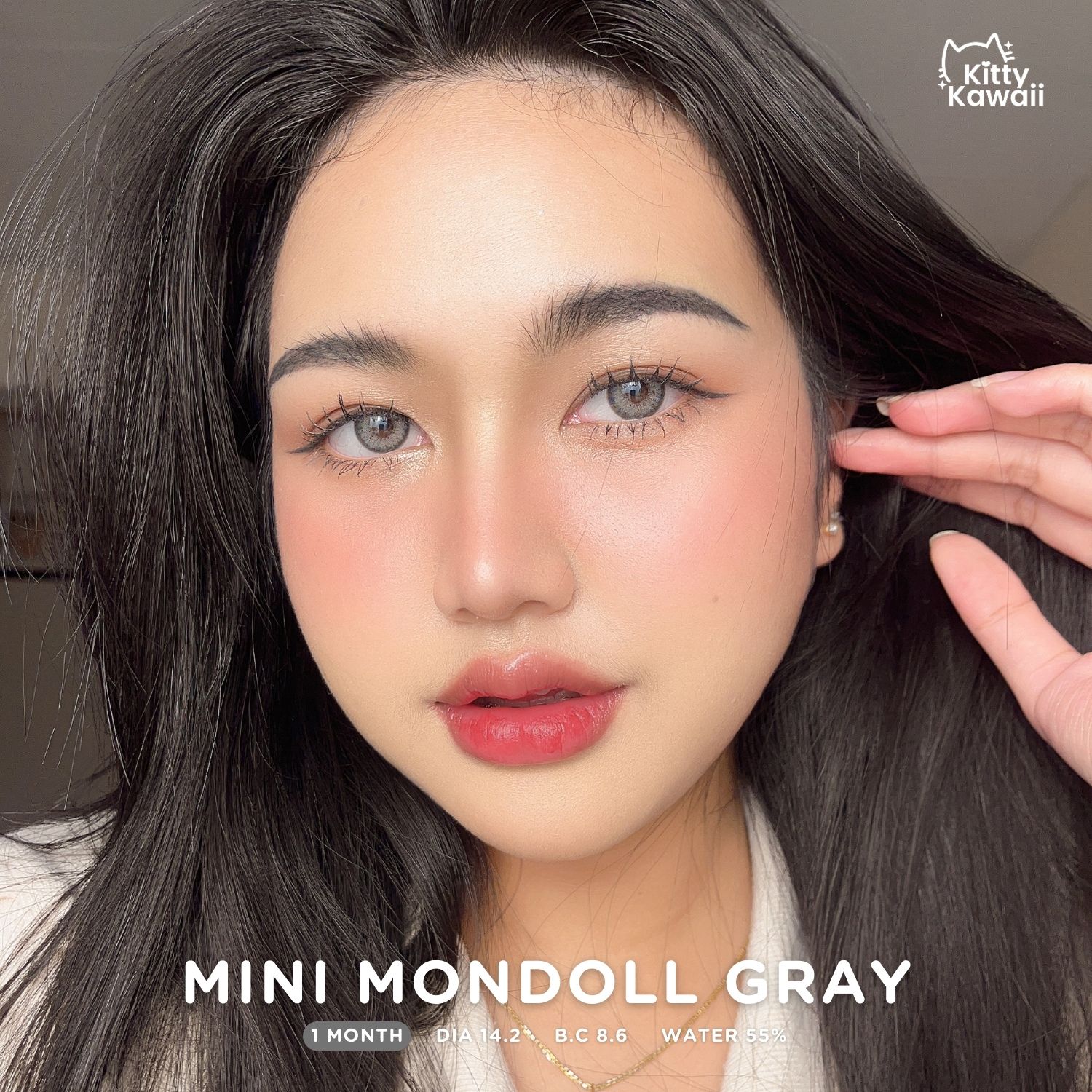 Get Kitty Kawaii Mondoll Gray Monthly Colored Contacts. Bold enlargement for a doll-like effect. Available plano & prescription (0.00 to -10.00)
