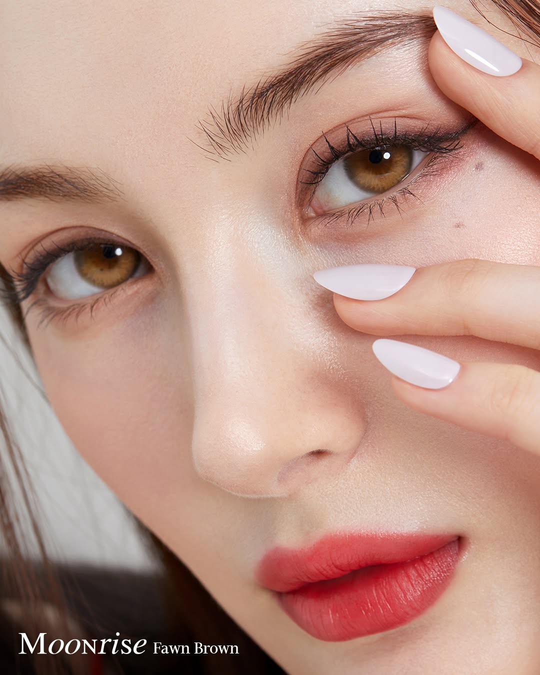 OLENS Moonrise Fawn Brown Monthly Colored Contacts, featuring soft fawn-brown tones that enhance dark eyes with natural warmth and depth. Comfortable, FDA-approved, and ideal for monthly wear. Available in prescription (0.00 to -10.00).