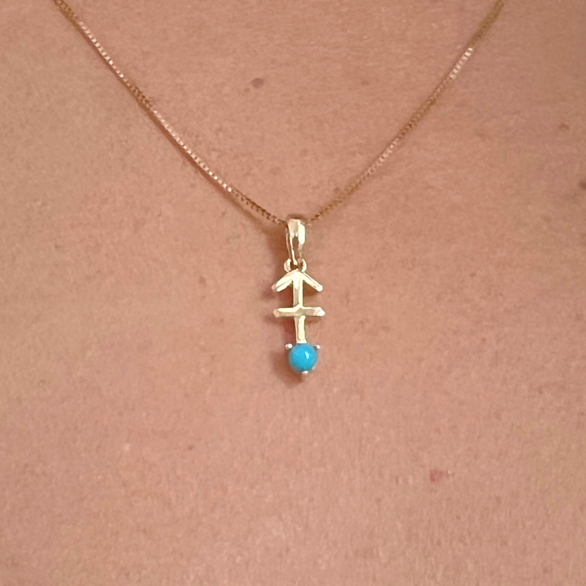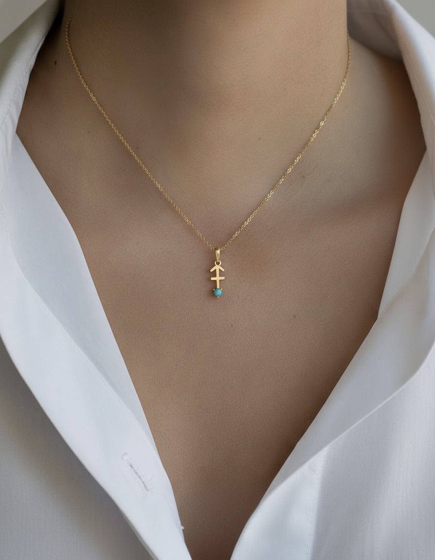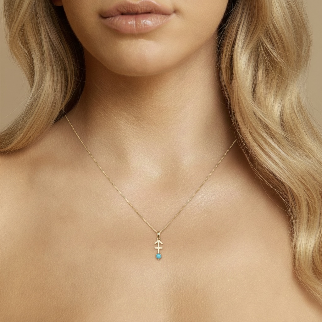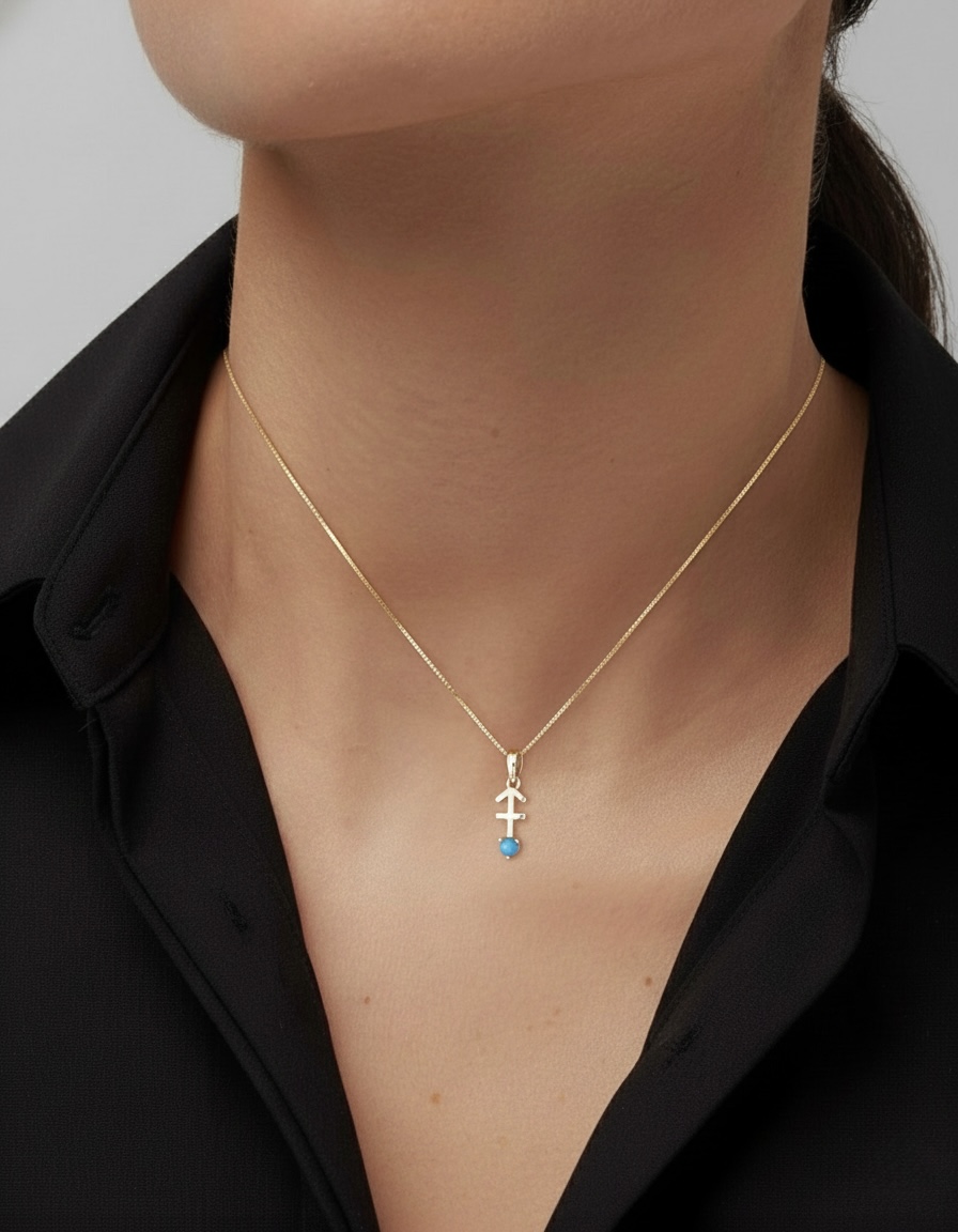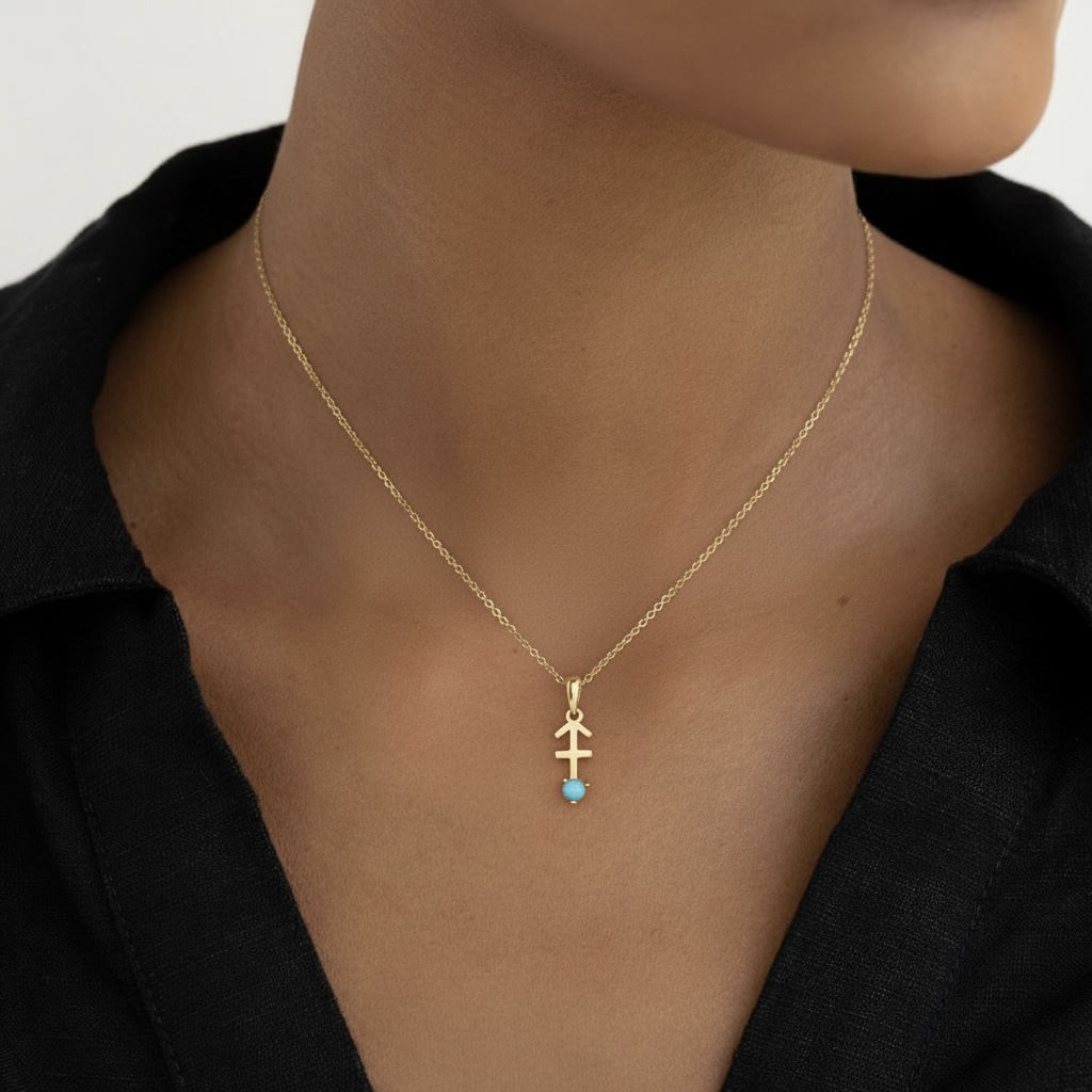 Adventurous and bold, this 10K solid gold Sagittarius pendant necklace is a perfect celebration of the archer spirit. Crafted in Au 417 real gold, the pendant showcases the Sagittarius archer design, symbolizing freedom, optimism, and exploration. A natural turquoise, December’s birthstone, brings a calming sky-blue glow, representing protection, wisdom, and good fortune. Ideal for those born under the Sagittarius sign (November 22 – December 21) or anyone who embodies its adventurous energy.
