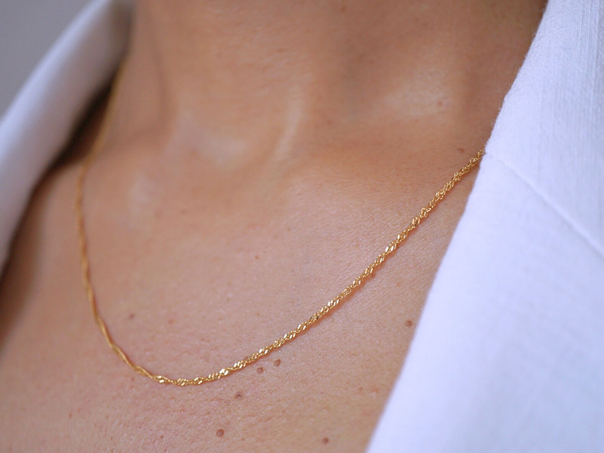 Material: 9K and 18K solid gold Weight: 0.9 to 1.15 g Length: 18, 16 and 20 inches Necklace closure: Spring clasp
