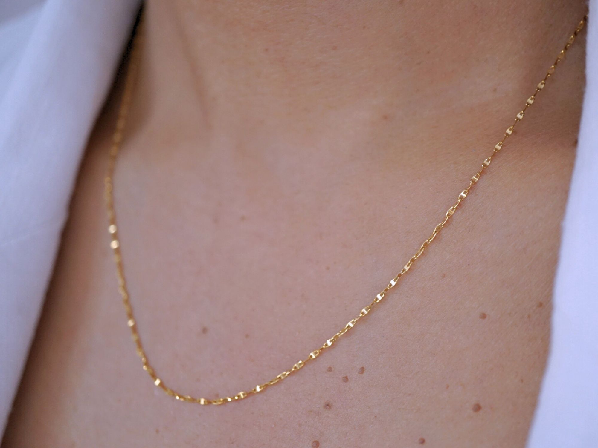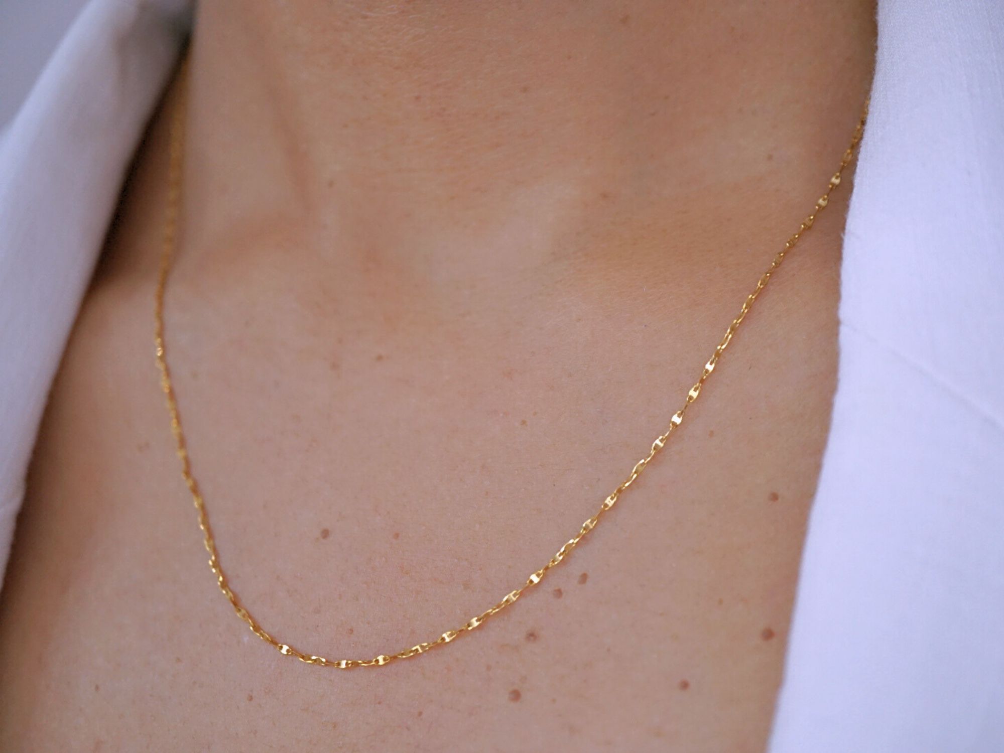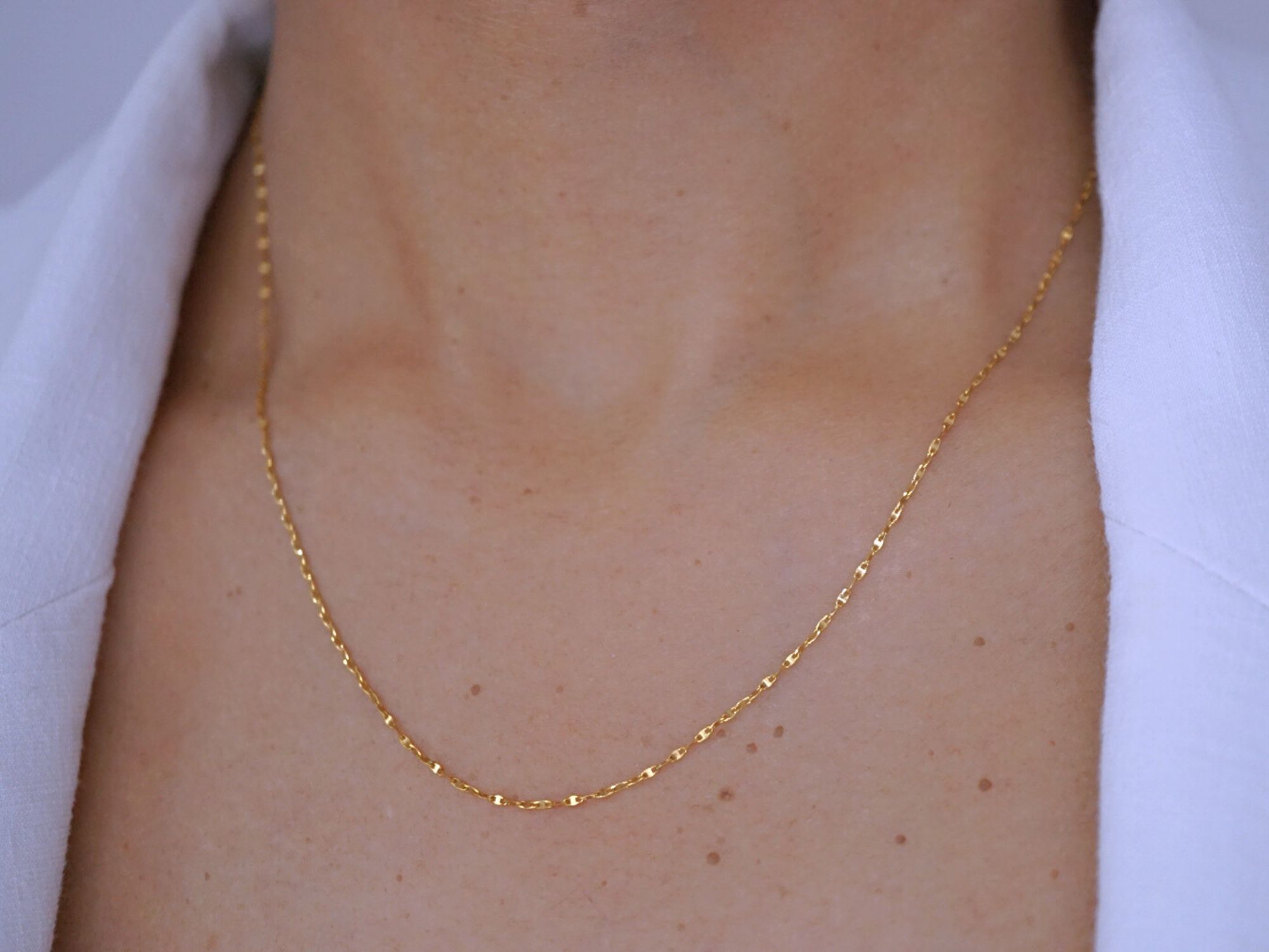 Sparkle Chain Necklace, 18K Solid Yellow Gold or White Gold