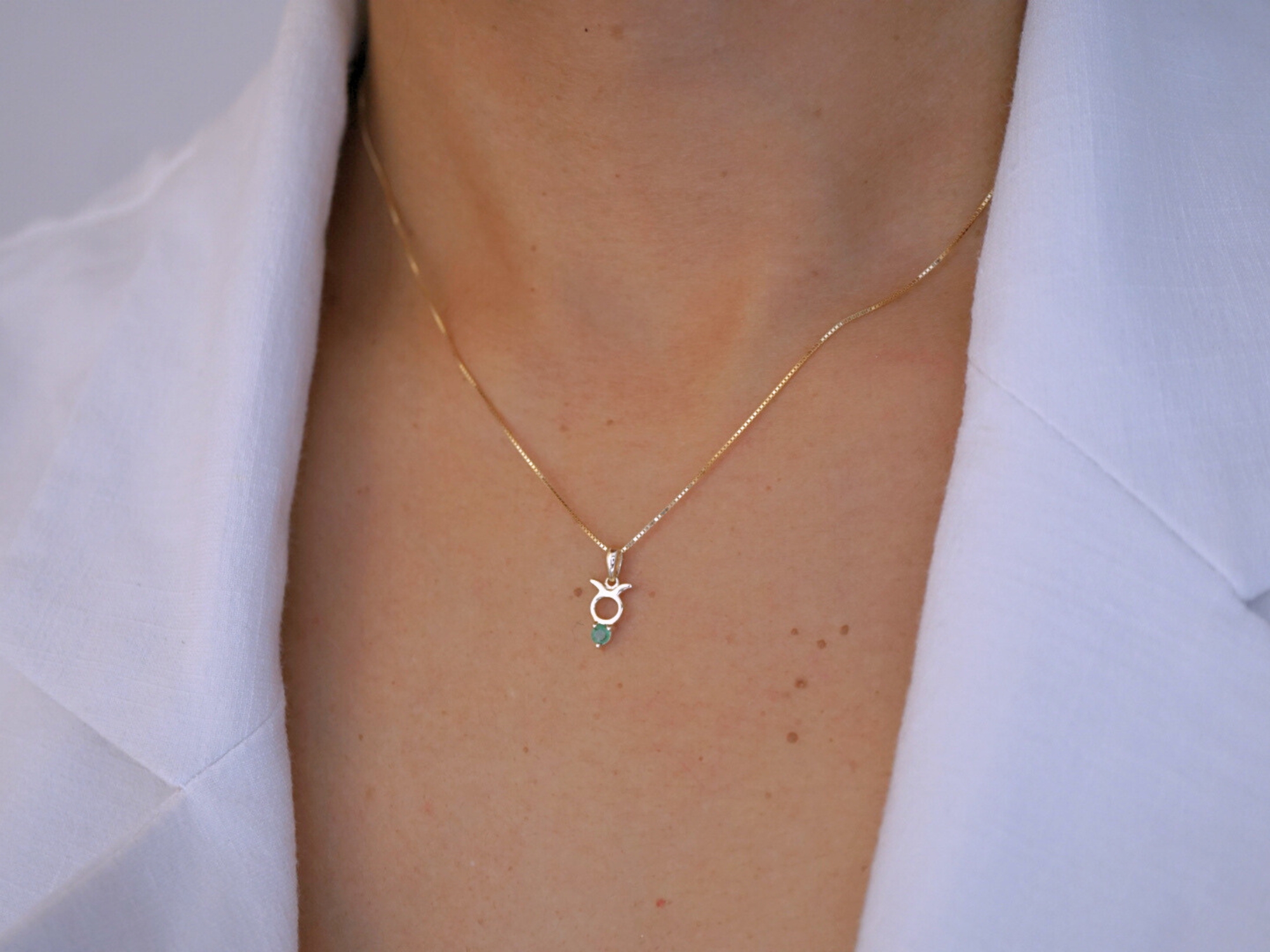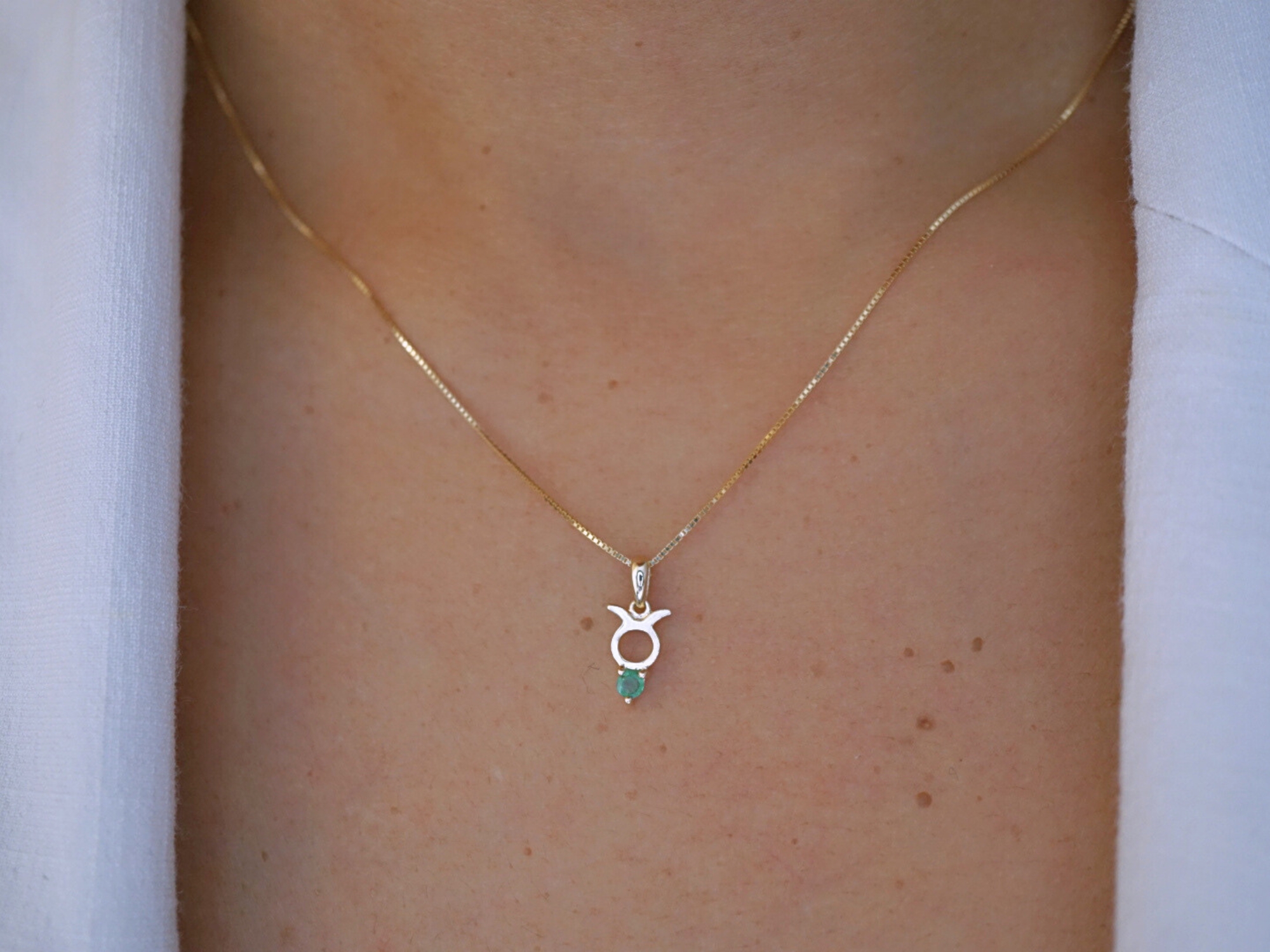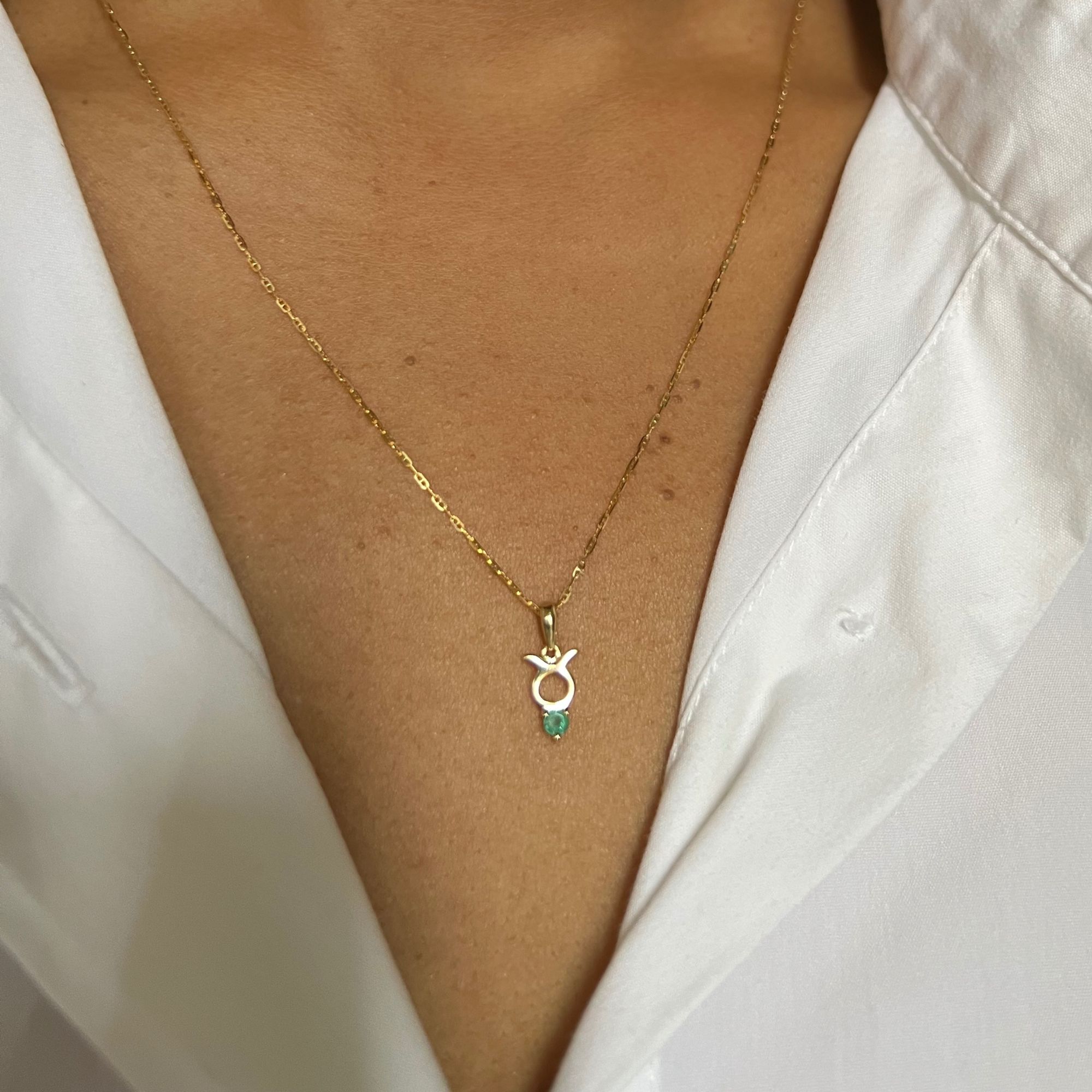 Taurus with Emerald Pendant, 10K Solid Gold, Dainty Gold Necklace