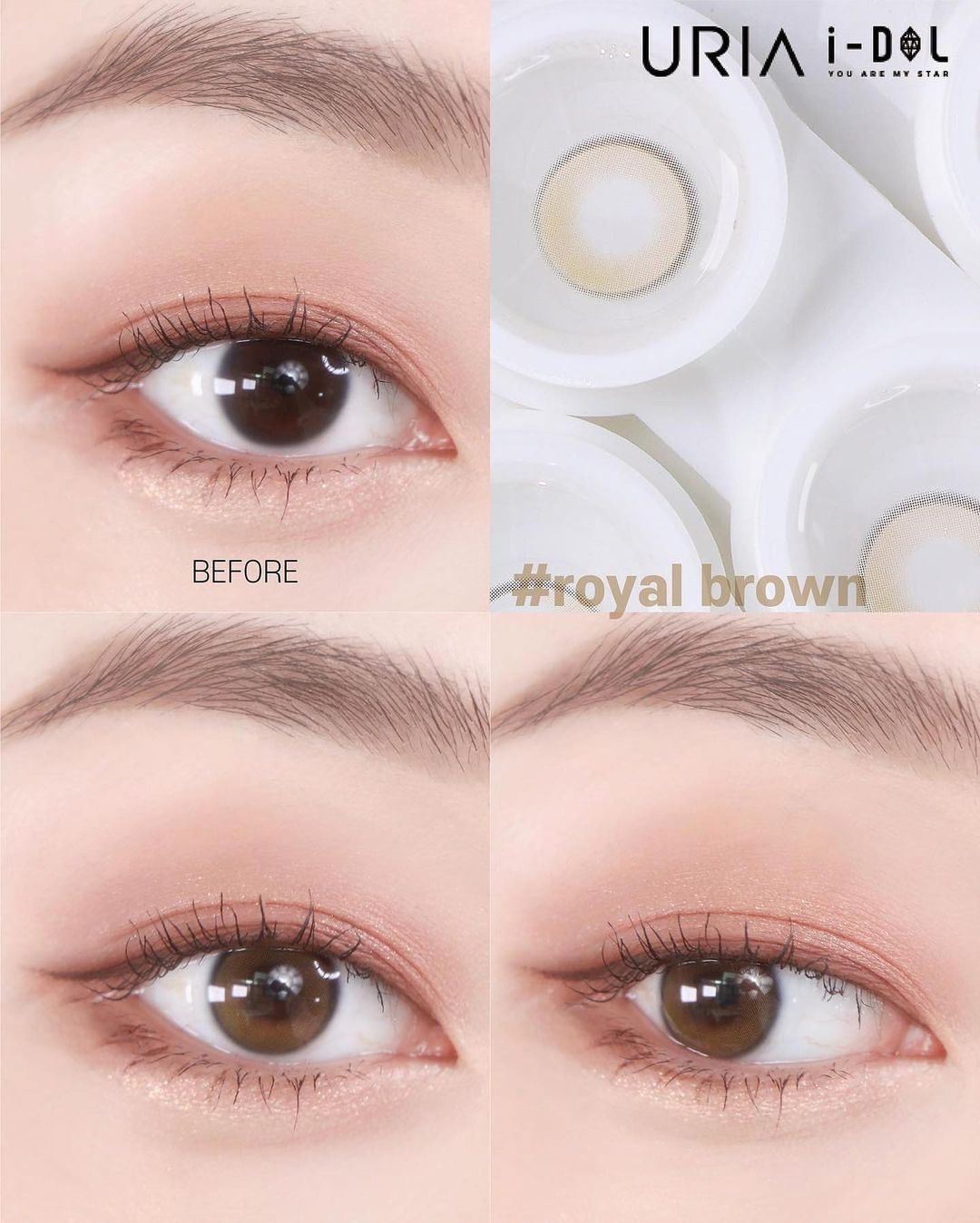 Uria Royal Brown yearly colored contacts feature rich brown tones, limbal ring, and natural transition. Plano & prescription (0.00 to -10.00).